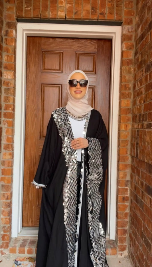 Black abaya with silver embellishments